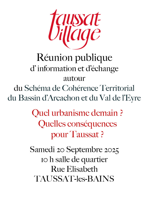 Les perspectives du projet de SCoT suscitent bien des interrogations. Aussi Taussat-Village, souhaite construire sa propre analyse des quelques 1600 pages du document. Elle en proposera vraisemblablement au printemps une « lecture » des incidences, y compris locales.
