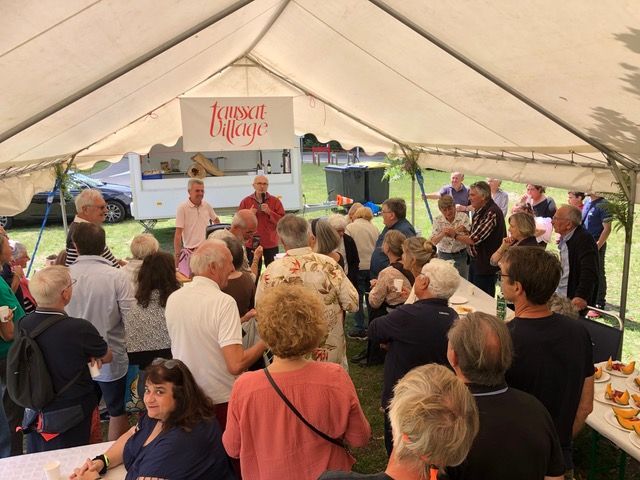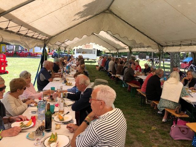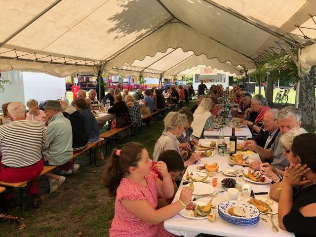 Belle ambiance au repas des adhérents de Taussat-Village, dimanche 2 juillet. Plus de 80 participants ont eu grand plaisir à se retrouver, à échanger des nouvelles du village et à apprécier le menu élaboré avec les commerçants locaux. Ce fut l’ouverture de la saison estivale avant de se revoir au vide greniers du 13 août, au grand concours de châteaux de sable et au dîner pique-nique des pantalons rouges du 15 août, et pour l’excursion au château de Malromé, avec visite et dégustation, le 21 septembre.