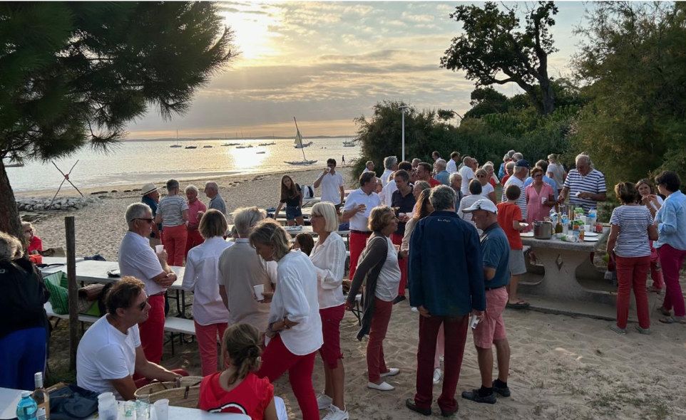 Excellente ambiance pour la traditionnelle soirée des pantalons rouges, devenue un point d’orgue des festivités du 15 août de Taussat-Village. Le décor d’un somptueux coucher de soleil a été propice aux échanges entre participants de tous âges autour d'un apéritif chaleureux et vitaminé préparé par Laurent Sinet et offert par l’association, puis d’un très amical pique-nique, moment d’échange et de partage entre plus d’une centaine de personnes venues témoigner de leur attachement à Taussat et à la préservation de son cadre de vie.